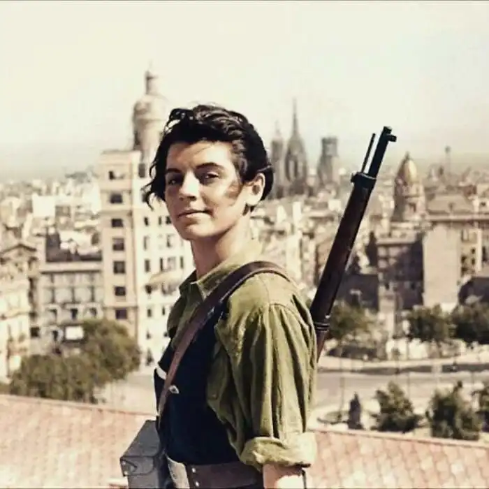 23. Марина Хинеста, 17-летняя активистка, журналистка и переводчица, на крыше отеля Colón в Барселоне, 1936 год