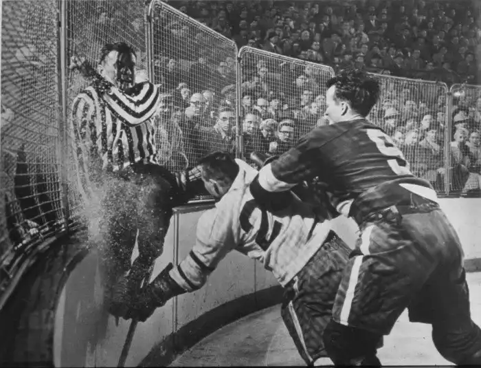 Довольно эффектный кадр с хоккейного матча 1956 года