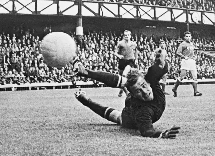 Лeв Яшин спасает вopoта от сборной Чили в 1962 году