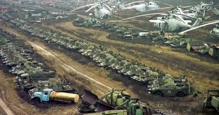 Так выглядело кладбище радиоактивной техники в Чернобыле в 1986 году