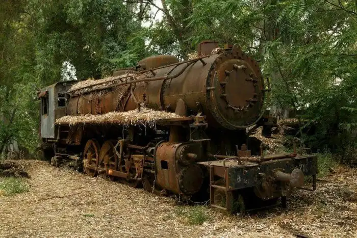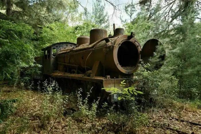 Старинный паровоз, найденный в лесах Греции