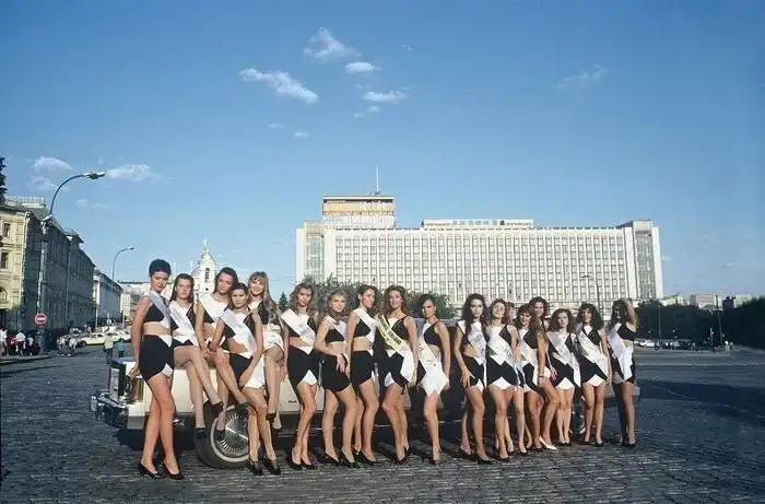 Девушки - участницы конкурса красоты, организованного владельцами первого итальянского ресторана в Москве. Август 1991 год.