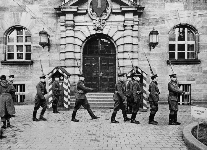 12. Советский караул у Дворца юстиции. Германия, г. Нюрнберг, 1946 год