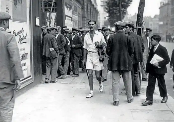 4. Энтузиаст реформы мужской одежды идет по улице Стрэнд в Лондоне. MDRP (Партия реформирования мужской одежды) была образована в межвоенные годы в Великобритании в 1930 году