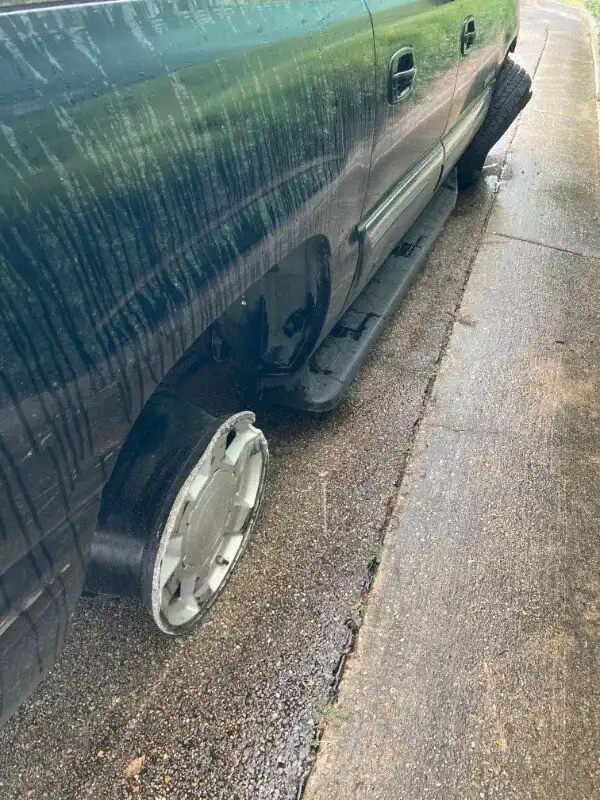"Я так и не понял, на что я наехал, но две мои шины тот этого взорвались"