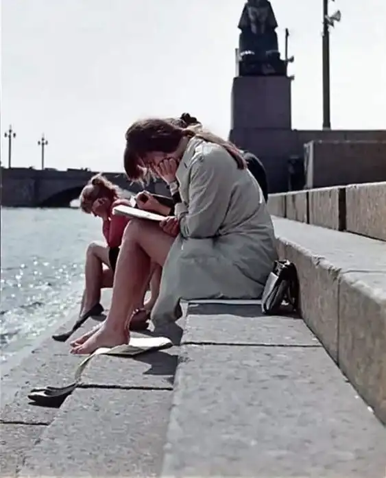 21. Подготовка к сессии на берегу Невы. Ленинград 1970 год