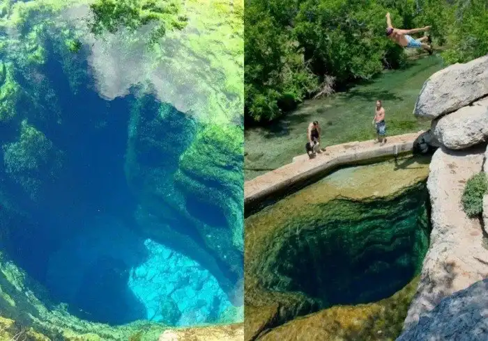 А ещё в Техасе находится колодец Иакова, глубина которого составляет 10 метров. Однако из-за прозрачности воды выглядит так, будто люди совершают самый настоящий прыжок в бездну.
