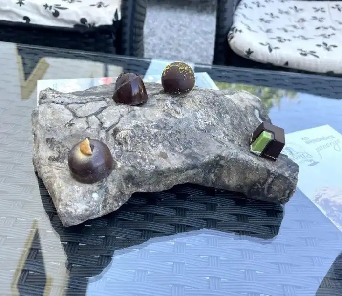 Четыре шоколадных конфеты на камне. Хм