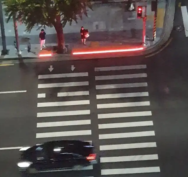 На пешеходных переходах в Корее есть дополнительные световые полосы на земле