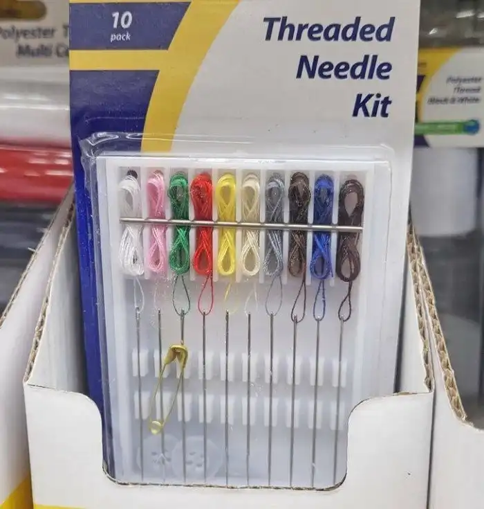 Набор иголок с уже вдетыми в них нитками разных цветов
