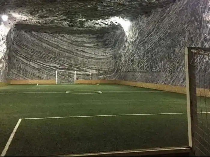 Футбольное поле в соляной шахте на глубине 30 метров под землей, Касица, Румыния