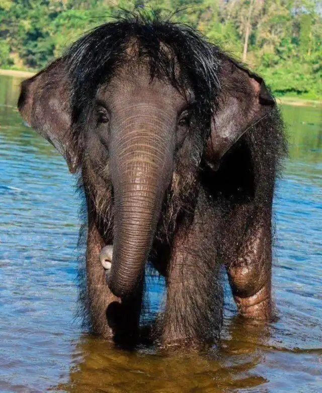 Азиатский слон, у которого по всему телу растут длинные волосы