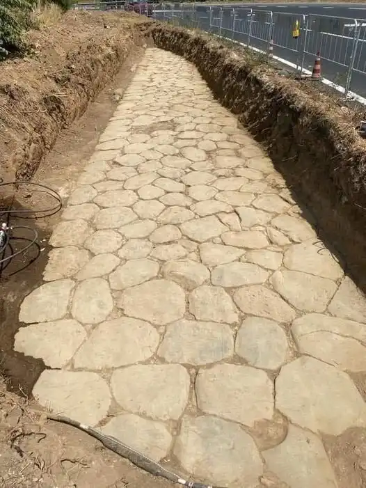 Прекрасно сохранившийся участок римской дороги, обнаруженный на глубине 0,90 м во время планирования нового водопровода в Риано. Путь Фламиния пролегал на север от Рима, через Апеннины к побережью Адриатики