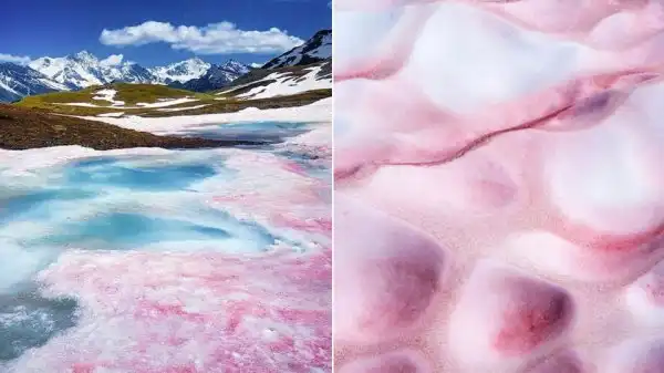 Ещё у такого снега есть более приятное название — арбузный. Он был так назван из-за своего специфического цвета и запаха. Увидеть арбузный снег можно только весной или летом в горах. А вот ответ на вопрос, почему он окрашивается в красный цвет, все искали очень долго. Было несколько теорий: частички особой горный породы, на это место упал метеорит, а ещё влияние водорослей с наличием в них розового пигмента. В итоге верной оказалась последняя версия. Всё дело в водорослях, которые становятся активными с наступлением тепла.