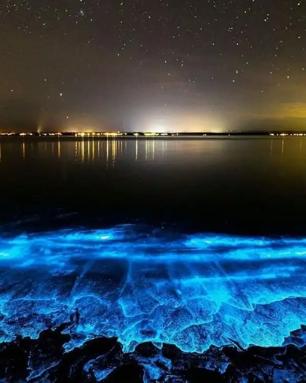 Биолюминесценция — естественное явление, связанное со способностью некоторых живых организмов излучать свет. В этом случае пляж Ваадху светится в темноте из-за фитопланктона. Он излучает свет во время взаимодействия с кислородом.