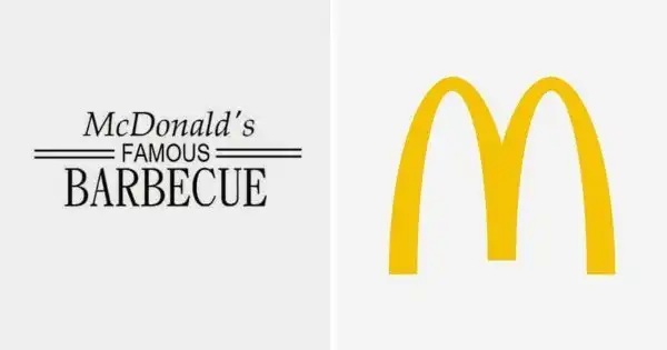 Первый фирменный знак представлял собой черную надпись «McDonald’s Famous Barbecue» на белом фоне. Такой дизайн просуществовал всего 8 лет, после чего компания приняла решение изменить его. Только к 1961 году логотип начал принимать узнаваемый вид и обзавёлся буквой «М» в виде арки.