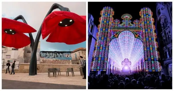 Художественный проект из Иерусалима, Израиль, предлагает прохожим немного тени - цветы открываются, когда человек проходит под ними