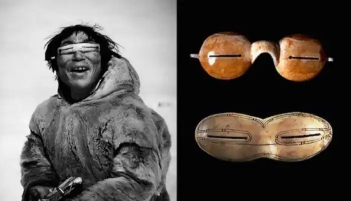 Первые изготовленные солнцезащитные очки восходят к инуитам, которые использовали измельченные кусочки моржовой кости из слоновой кости
