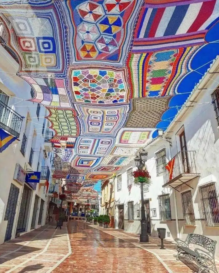 Большая мозаика из вязаных крючком навесов в Малаге, Испания