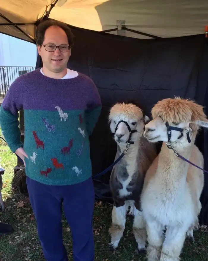 Это альпачий свитер. Связан из 100% пряжи альпаки и изображает альпак. Предназначен для ношения на фестивале альпак в Мэриленд, который проходит каждый ноябрь. Что тут скажешь? Альпак много не бывает!