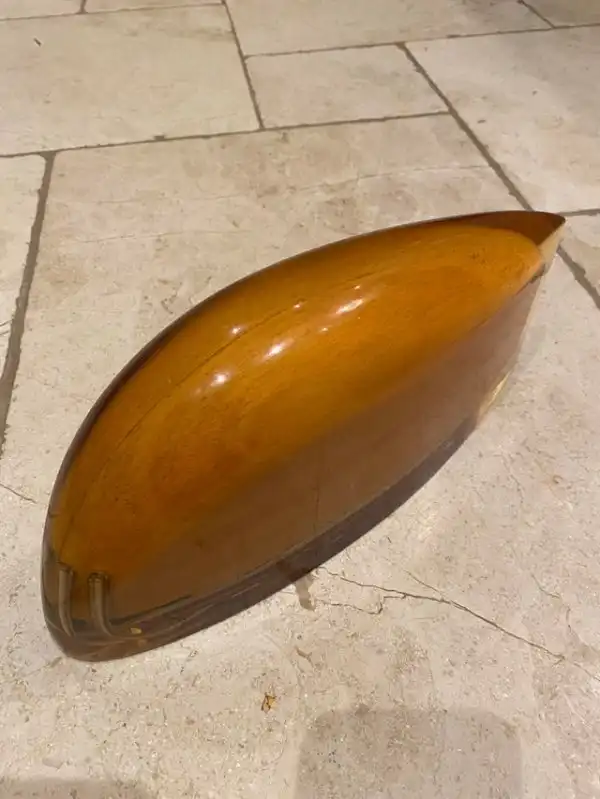 Странное устройство, сделанное из смолы и дерева. По центру проходят провода