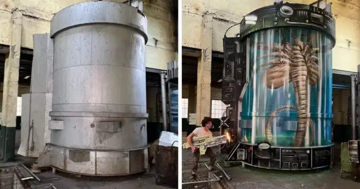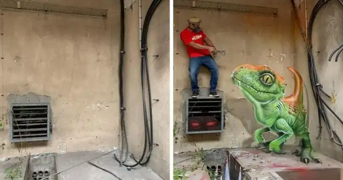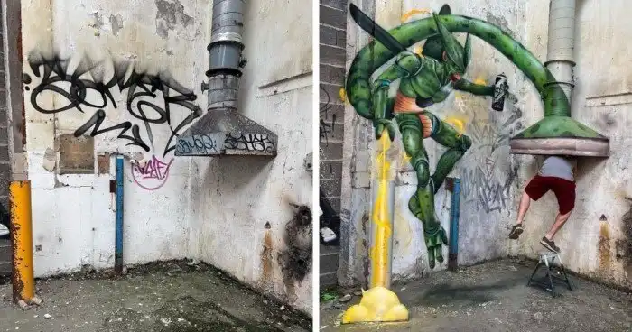 Французский художник с псевдонимом SCAF показывает другую сторону стрит-арта, которая не сможет вас не удивить. Парень рисует реалистичные 3D-граффити, превращая унылые места и предметы в настоящие произведения искусств. А их герои так и норовят выпрыгнуть из каменных плит на волю и попугать людишек.