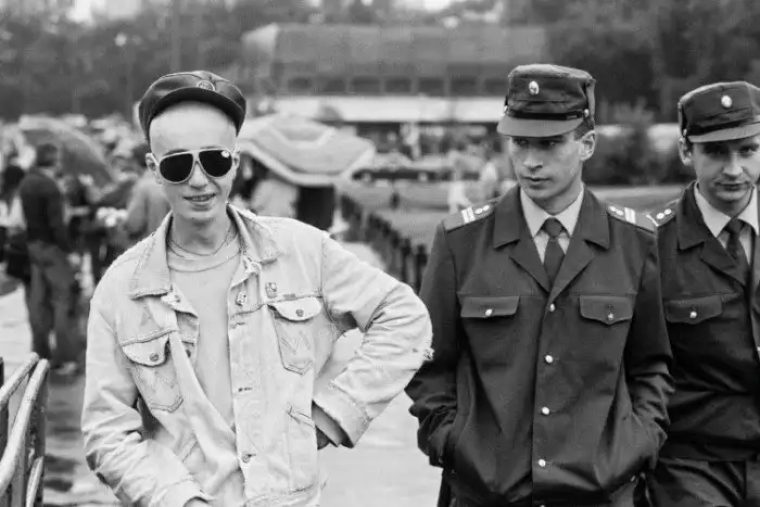 11. Модный парень и служители правопорядка. Москва. Россия. 1992 год