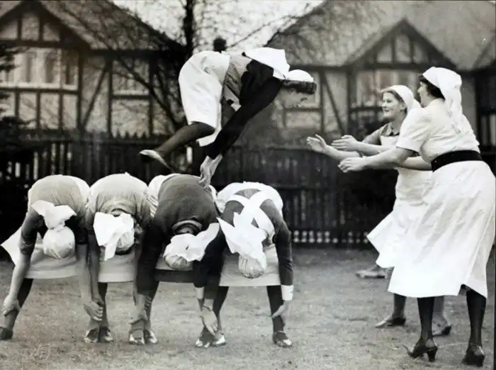 21. Сотрудницы Красного Креста играют в чехарду, 1940 год
