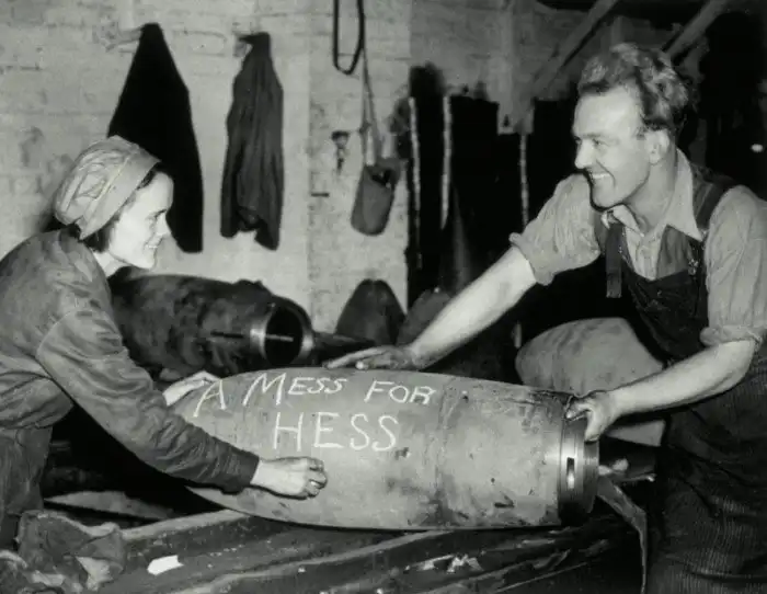 25. Послание на снаряде немецким нацистам от рабочих британского военного завода, 1940-е гг