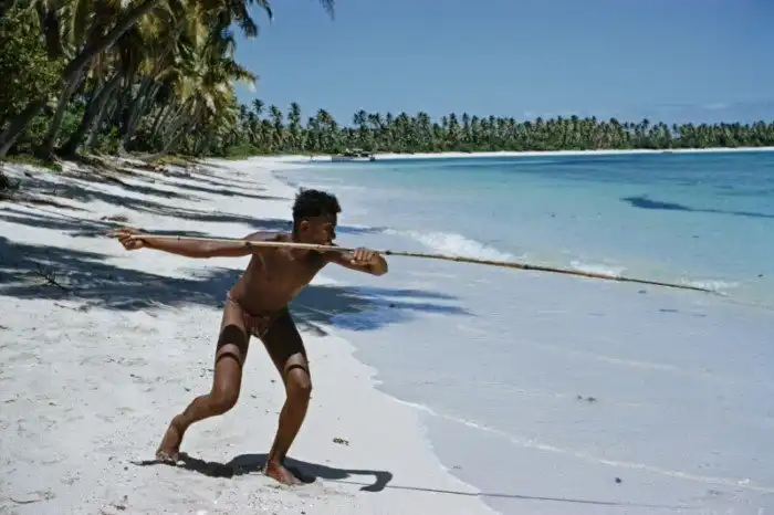 28. Рыбак с копьем. Голубая лагуна на островах Ясава, Фиджи, 1965 год