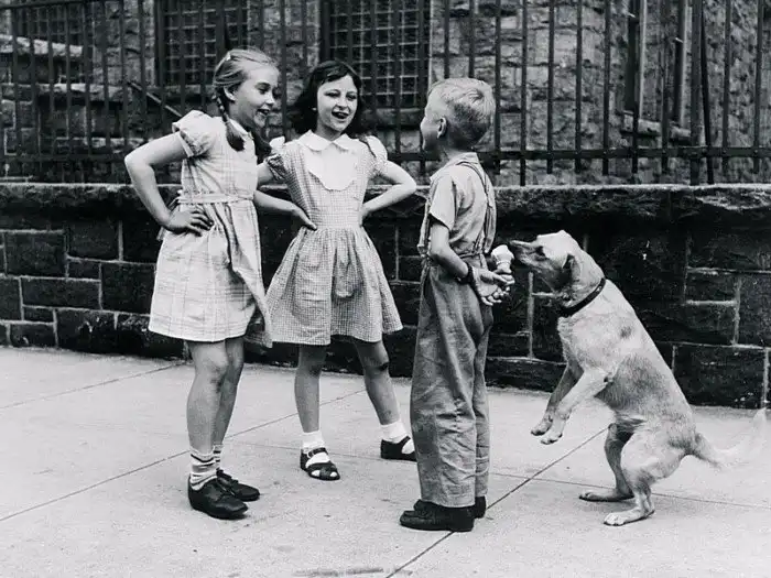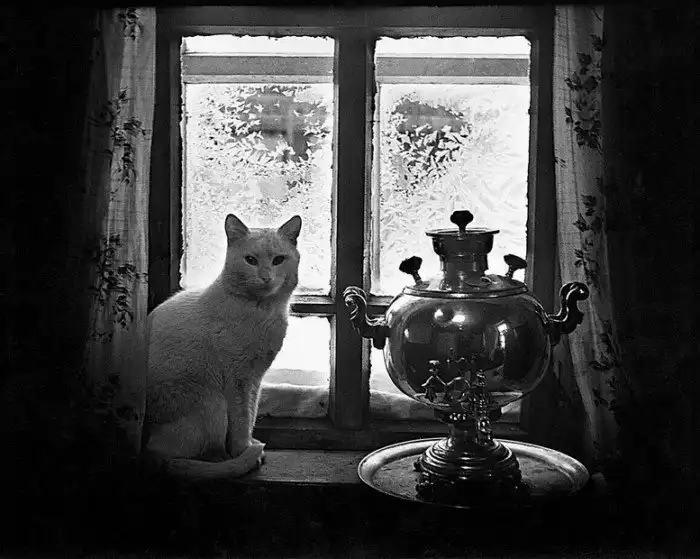 41. Кот с другом, 1954. Фотограф Леон Левинстайн
