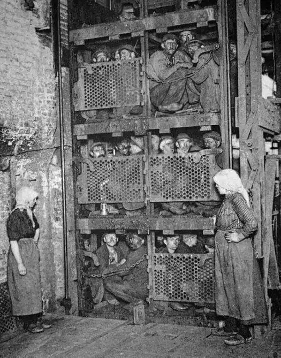 10. Конец рабочего дня, ирландские угольщики поднимаются из шахты в Бельгии, 1900 год