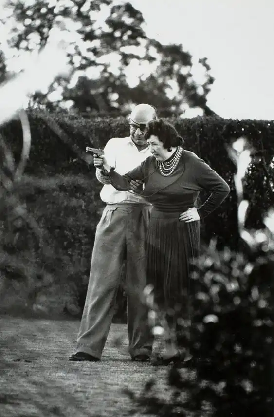 18. Мужчина учит женщину стрелять из пистолета, 1961. Фотограф Иэн Берри