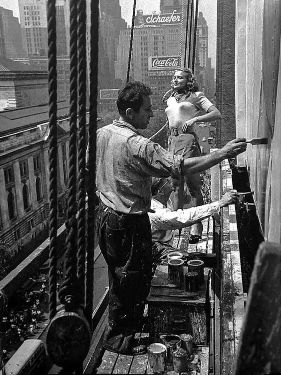 20. Натурщица и художники. Работа над рекламным щитом, Нью-Йорк, 1947. Фотограф Фрэнк Бауман