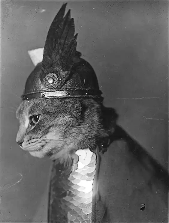 28. «Брюнхильда», 1936. Кошка в шлеме викинга. Фотограф Адольф Э. Вейдхаас