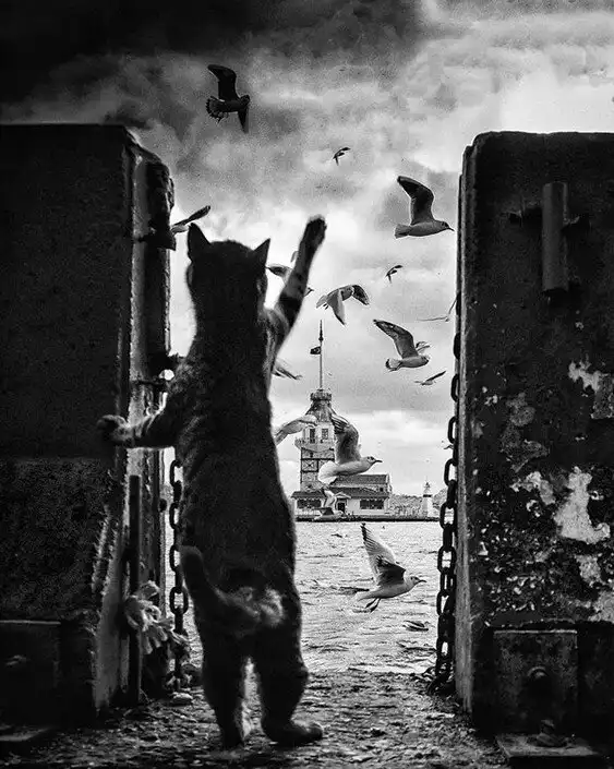 39. Кот приветствует чаек в Стамбуле. Фотограф Яшар Коч