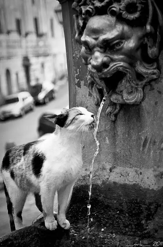 43. Кот у фонтана. Италия, 2011. Фотограф Mirko Perrone