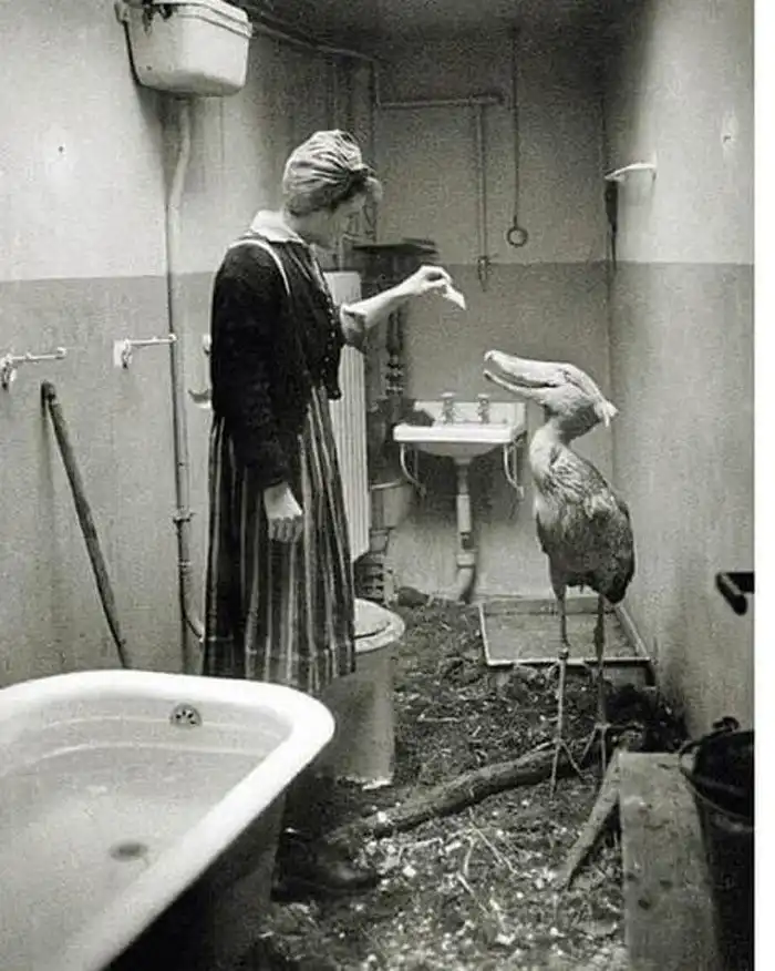 5. Когда советские войска подошли к Берлину в 1945 году, работники Берлинского зоопарка делали все возможное, чтобы позаботиться о животных. Этот китоглав временно поселился в доме одной из сотрудниц