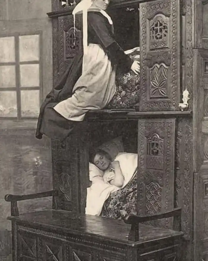 22. Французская коробка-кровать или закрытая кровать была распространена в Бретани и других европейских странах. В домах с одной комнатой она позволяла уединиться и согреться зимой