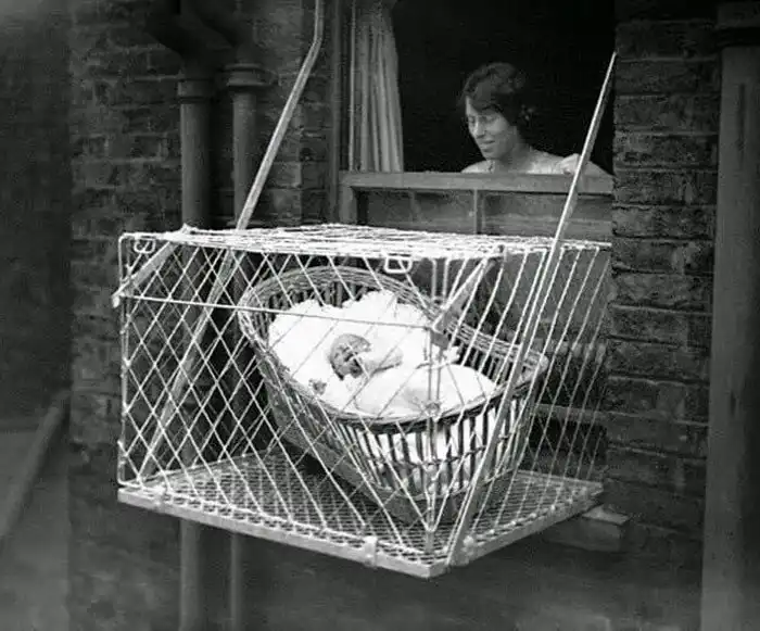 35. В 1930-х годах для того, чтобы дети в многоквартирных домах получали достаточно свежего воздуха и солнечного света, использовали "детские клетки"