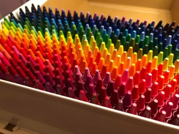 Смотришь на эти расставленные восковые мелки по цветам, и глаз радуется