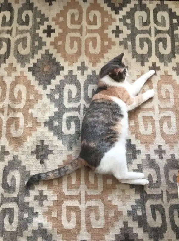 Окрас кошки идеально сочетается с рисунком ковра