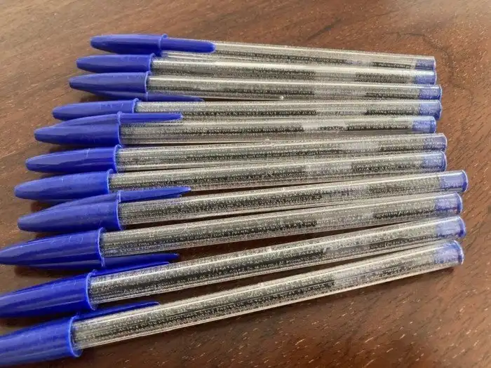 Конфискованные ручки со шпаргалками, вырезанными студентами Университета Малаги, Испания.