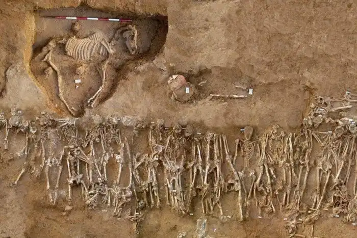 Братская могила солдат второй битвы при Гимере на Сицилии в 409 г. до н.э.: солдаты и лошадь