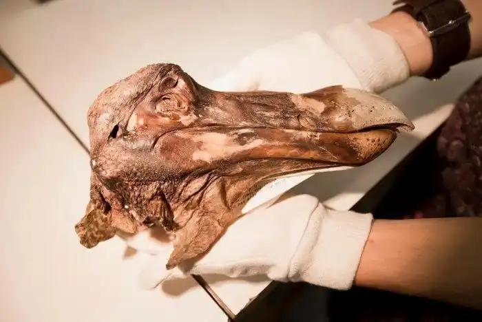 Голова единственного экземпляра дронта (птицы додо) с сохранившимися мягкими тканями.