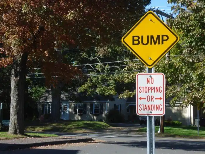 Латинская надпись «BUMP» будет понятная только водителям из англоязычных стран. А суть его крайне проста: он просто предупреждает о приближении участка с лежачим полицейским.