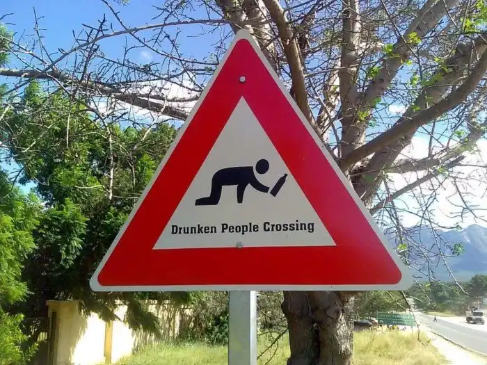 А вот в Румынии можно встретить весьма необычный знак, предупреждающий о возможном появлении нетрезвых пешеходов. В частности, они появились в городе Печика, где много людных улиц вблизи баров и ресторанов. Оказывается, что решение разместить этот знак появилось после того, как на проезжей части стало появляться слишком много пьяных, валяющихся людей.