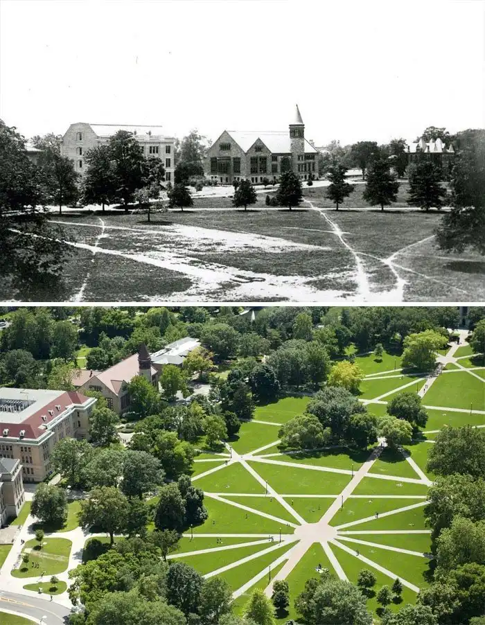 7. Дорожки в Университете штата Огайо были вымощены на основе "народных троп", проложенных студентами