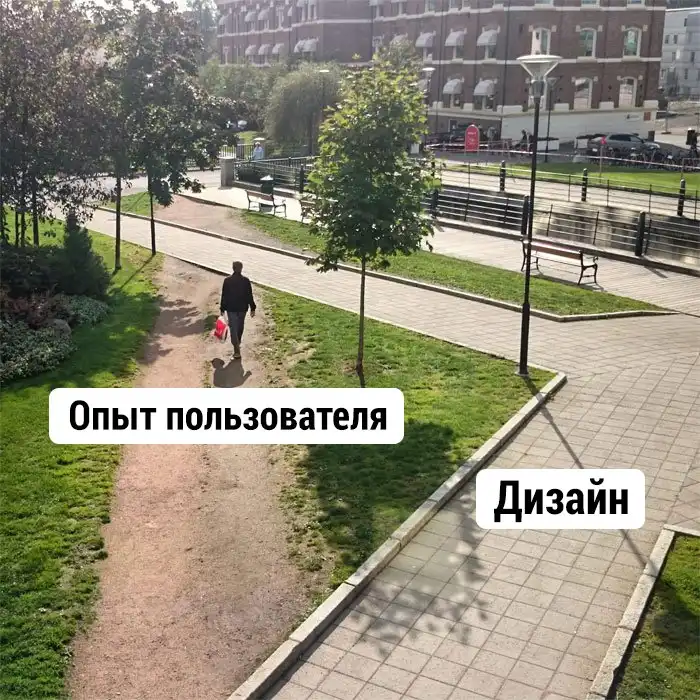 27. "В моем колледже на тропу положили дерн и повесили знак "По траве не ходить". Студенты послушались и проложили дорожку рядом с дерном"