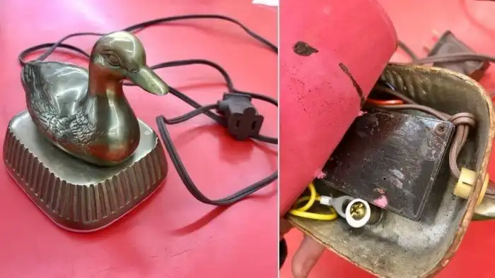 Это электрическая утка. У неё есть 2-контактный шнур с надписью "electricord", но он не нагревается, не имеет звуковых отверстий и не двигается. Есть идеи?